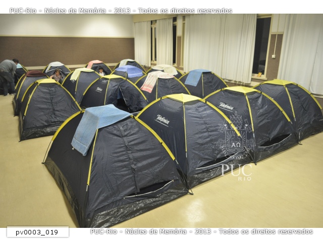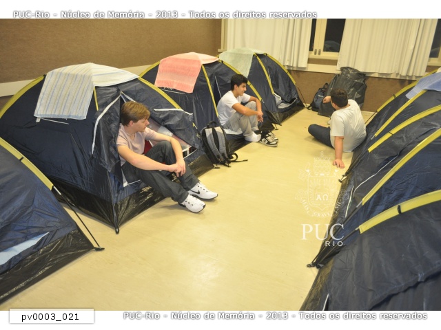 Acampamento montado pelos multiplicadores visitantes do Ginga-Brasil II, em sala de aula da PUC-Rio. |