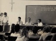 Alunas do Colégio Teresiano tem aula em sala da PUC-Rio. É provável que as instalações do Teresiano ainda estivessem em obras. |