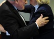 O Reitor Pe. Josafá S.J. entrega um presente ao Pe. Hortal S.J.. |