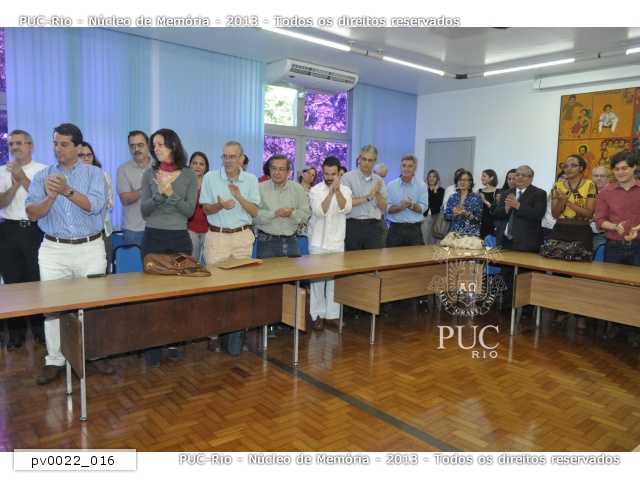 Professores, funcionários e representantes da administração central da PUC-Rio assitem à cerimônia de posse da Professora Daniela Vargas na função de coordenadora central de graduação da PUC-Rio, em agosto de 2011. |