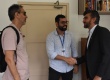 O Reitor Pe. Anderson S.J. conversa com Rodrigo Lauriano Soares, ex-bolsista do Núcleo de Memória. |