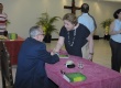 Convidada cumprimenta o Reitor Pe. Josafá S.J. na mesa de autógrafos. |