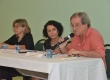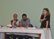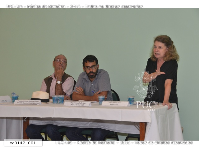 A profa. Maria Sarah, a centro, coordena a segunda mesa do seminário que contou com a participação da profa. Maria Alice e do prof. Daniel Aarão Reis. |