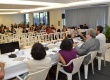 Plateia e mesa com palestrantes. |