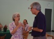 O Reitor Padre Josafá S.J. participa da confraternização com os funcionários. |