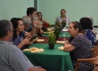 Funcionários reunidos no salão da Pastoral durante a confraternização. |