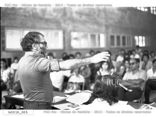 Palestra sobre favelas em Ciclo de Palestras e Debates sobre Problemas Sociais, realizada no antigo Salão de Vidro, em obras, onde atualmente se localiza o Auditório Padre Anchieta. |
