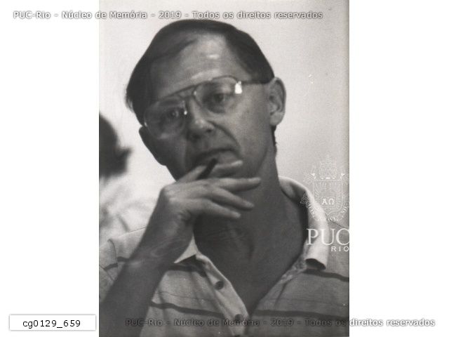 Professor americano não identificado em visita ao Departamento de Comunicação Social da PUC-Rio. |