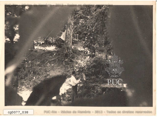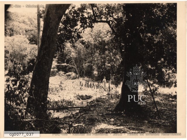 Terreno do campus Gávea ainda coberto de vegetação. |