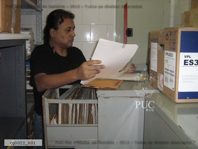 Pesquisadora no local do acervo, na época sala da reprografia. |