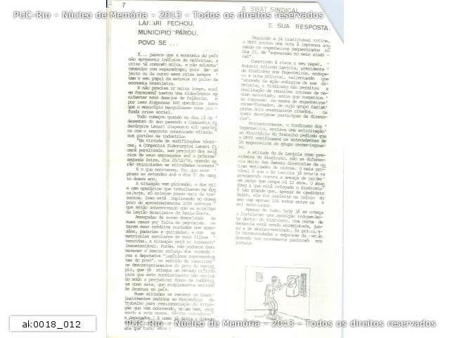 Artigos: Lanari fechou, município parou, o povo se..., A Swat sindical e sua resposta. Reportagem. Jornal do CTC da chapa Alternativa, do movimento estudantil da PUC-Rio, número 02. |
