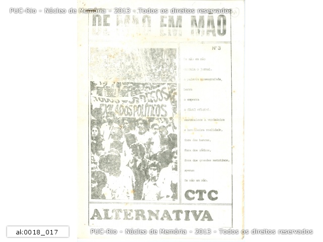 Capa. Jornal da chapa Alternativa, no CTC, do movimento estudantil da PUC-Rio, número 03. |