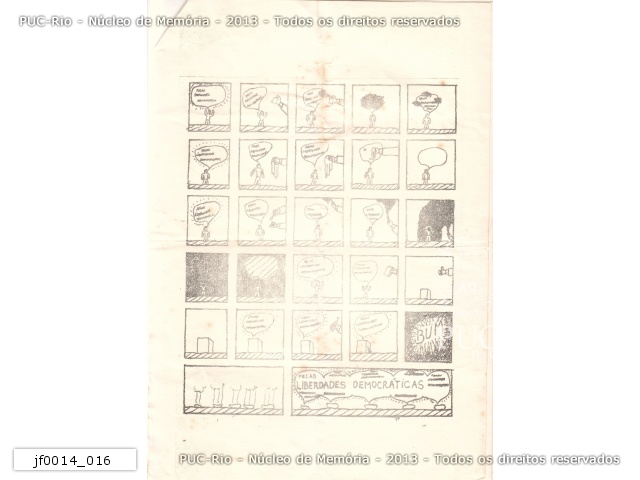 Material de campanha da chapa Viração ao Diretório Acadêmico Galileu Galilei. História em quadrinhos "Pelas liberdades democráticas". |