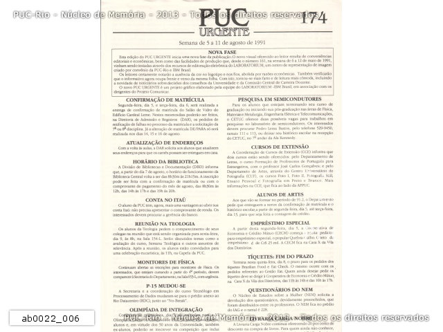 Edição número 174 do PUC Urgente da semana de 05 a 11 de agosto de 1991. Página 2. |