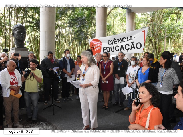 Centenas de pessoas lotaram os pilotis do Edifício da Amizade para a manifestação em defesa da democracia. O ato foi realizado em várias partes do país e na PUC-Rio foi convocado pela Associação de Docentes e pela Associação dos Funcionários, com apoio de mais de 40 entidades da sociedade civil. Em todas as manifestações, foi lida a "Carta às brasileiras e aos brasileiros em defesa do Estado Democrático de Direito".