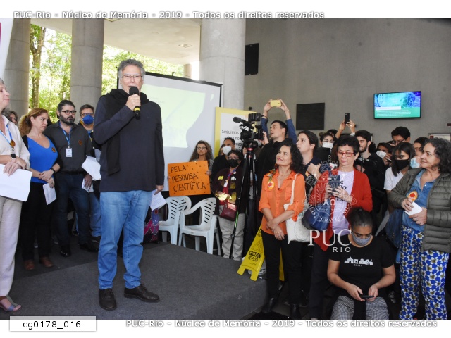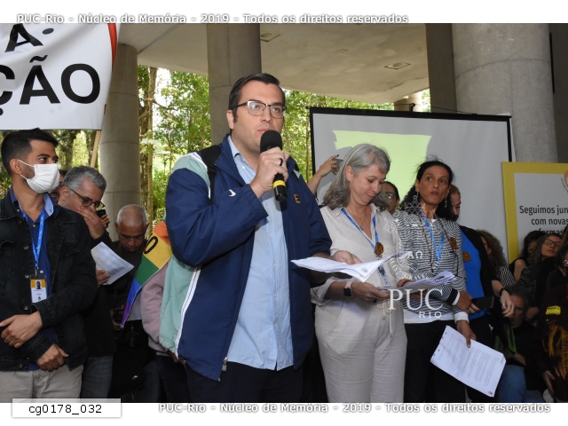 cg0178_019 | 11/8/2022 | Fala do prof. Marcelo Jasmim (HIS), que esteve presente ao evento de 10/05/1977 nos pilotis da PUC-Rio. |