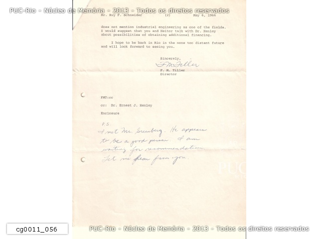 cg0011_056 | 6/5/1966 | Correspondência de F. M. Tiller (University of Houston) para o prof. Ruy Schneider (IND) |