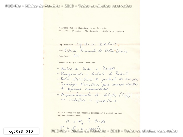 | Levantamento sobre os interesses intelectuais dos professores da PUC - cg0039_001 |