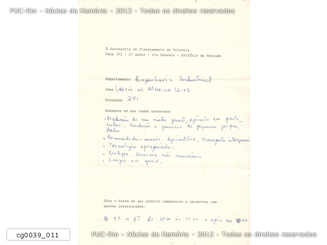 | Levantamento sobre os interesses intelectuais dos professores da PUC - cg0039_024 |
