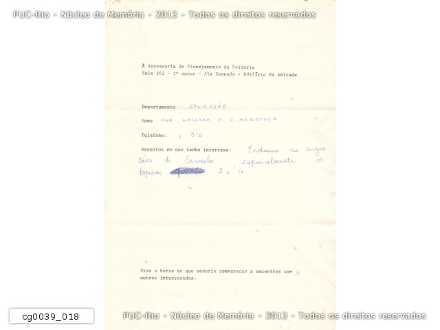 | Levantamento sobre os interesses intelectuais dos professores da PUC - cg0039_002 |
