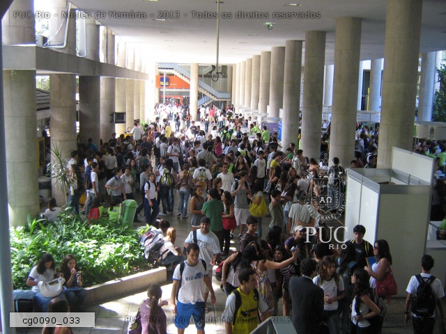 cg0090_008 | 18/4/2008 | Alunos chegando para as atividades. Balão do Portal PUC-Rio Digital. |