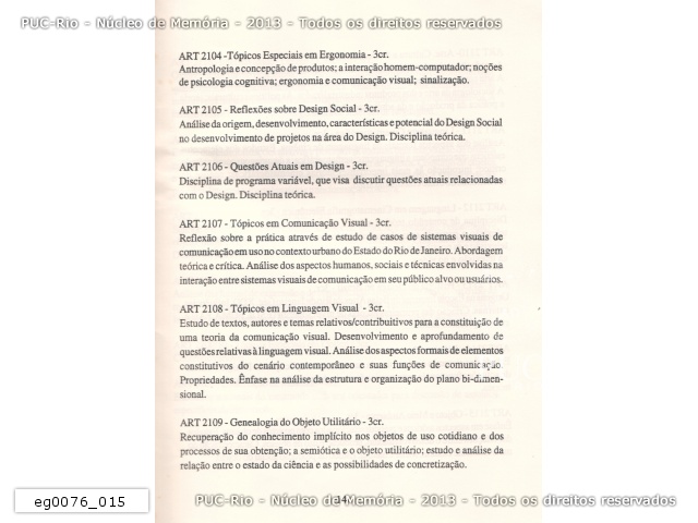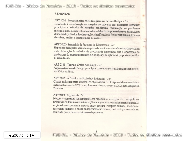 Proposta da Pós-Graduação em Design. Contém uma breve história do Departamento de Artes, a justificativa da criação da Pós em Design, as linhas de pesquisa, a estrutura curricular, os docentes, as instalações e os requisitos para inscrição.
