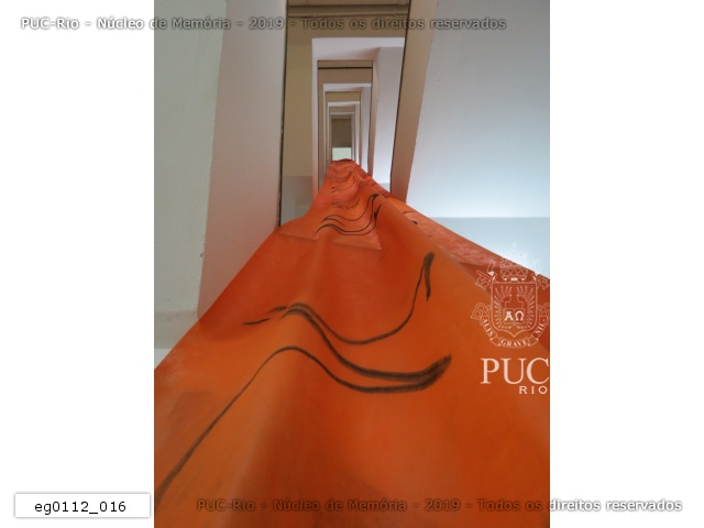eg0112_023 | 7/11/2011 | Intervenção com faixas laranjas e amarelas nos pilotis, como propaganda de chapas que disputaram as eleições de 2011 para o Diretório Central dos Estudantes da PUC-Rio (DCE). |