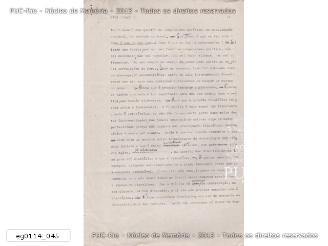 eg0114_029 | 11/1986 | Artigo intitulado 'Pós-Graduação e competência política', de autoria do professor Leandro Konder, apresentado no Seminário dos 20 anos do mestrado em Educação da PUC-Rio. |