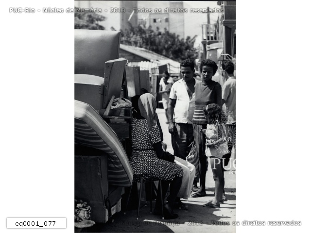 eq0001_077 | 11/4/1970 | Detalhes dos moradores com suas mobilias à espera dos caminhões para fazerem a mudança. |