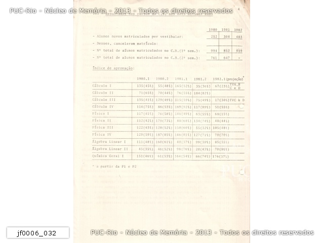 jf0006_032 | 1983 | Diretrizes Acadêmicas para 1983/1984 Centro Técnico Científico cont.,, comuma tabela com o indíce de aprovação dos anos de 1980, 1981 e 1982.1 |