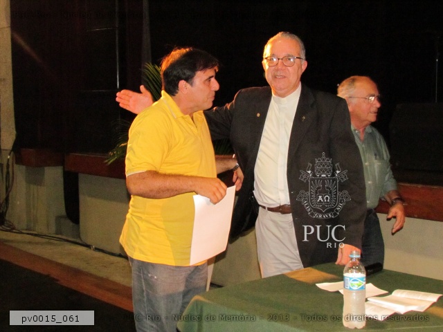 pv0015_076 | 14/10/2011 | O prof. Paulo Humberto recebe os cumprimentos do reitor pe. Josafá S.J. em agradecimento aos 35 anos de dedicação à PUC-Rio. |