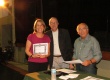 pv0015_039 | 14/10/2011 | A profa. Maria Rita Passeri com o diploma de Honra ao Mérito em agradecimento aos 35 anos de dedicação à PUC-Rio. |