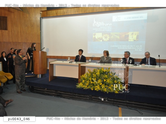 pv0043_014 | 26/8/2010 | Seminário 'Desafios para uma Universidade de Classe Mundial', promovido pela PUC-Rio e pelo sistema CNI-SENAI-IEL, sob a organização do vice-reitor administrativo da Universidade, Professor Luiz Scavarda. A conferência 'Inova Engenharia - Propostas para a modernização da educação em engenharia no Brasil' homenageou o Padre Hortal pelos quinze anos em que esteve à frente da reitoria da PUC-Rio. |