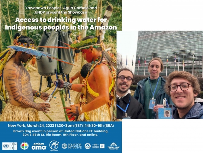 Os ex-alunos Rodrigo Belli, Daniel Ilg e João Manuel Tui foram convidados a participar da Conferência Mundial da Água, que aconteceu entre os dias 22 e 24/03/2023, na sede da ONU em Nova York. A empresa que eles formaram, Água Camelo, trabalha em parceria com empresas que queiram atuar em projetos de acesso a água limpa em comunidades carentes ou isoladas. No evento, estiveram com eles representantes da ASCY, Associação Sociocultural Yawanawá, para apresentar o projeto que desenvolveram em parceria com a Ambev.