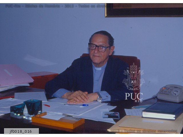 Reitor Pe. Laércio S.J. em sua mesa de trabalho. |
