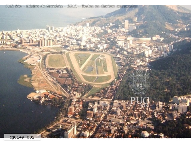Imagem feita a partir do Corcovado, que mostra a Lagoa Rodrigo de Freitas, o Jockey Club, o Jardim Botânico, o bairro do Leblon e o bairro da Gávea. É possível ver o Conjunto Habitacional Marques de São Vicente e a PUC-Rio, e o espaço ocupado pelo Parque Proletário da Gávea. |