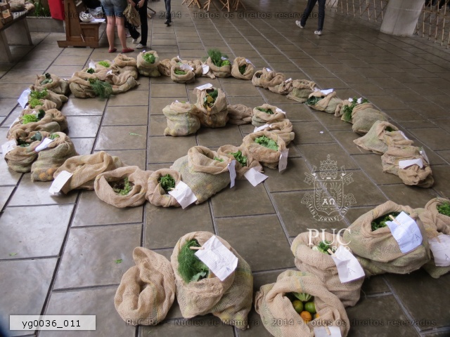 Alimentos cultivados pelos alunos expostos nos pilotis. |