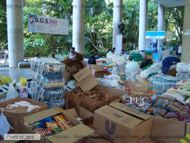 As doações são recebidas de vários postos na cidade e se concentram nos pilotis da Ala Kennedy. |