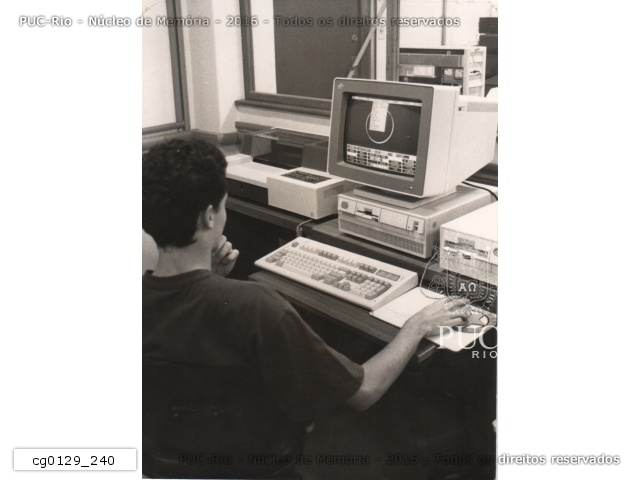 Aluno utilizando o Laboratório de Visualização, chamado "Laboratorium", que funcionava no segundo andar do RDC. |