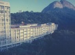 Fachada de parte do Edifício Cardeal Leme, com o Morro Dois Irmãos ao fundo. |