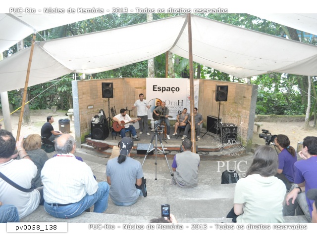 O público assiste às apresentações musicais da jornada de atividades culturais do 7° MUTICOM - Mutirão Brasileiro de Comunicação. |