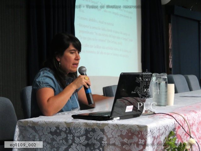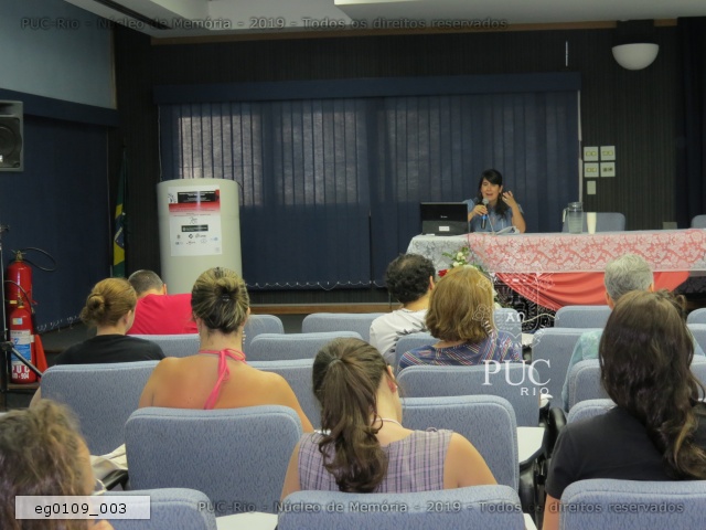 Plateia observa atentamente a conferencista no I Seminário Latino-Americano de Geografia e Gênero: Espaço, Gênero e Poder no auditório Padre Anchieta, organizado pelo Departamento de Geografia da PUC-Rio. |