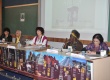 O decorrer da mesa-debate. Os participantes da mesa descontraem. |