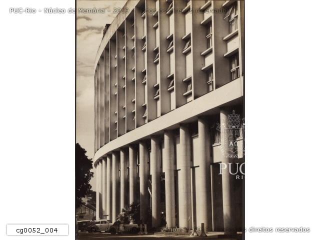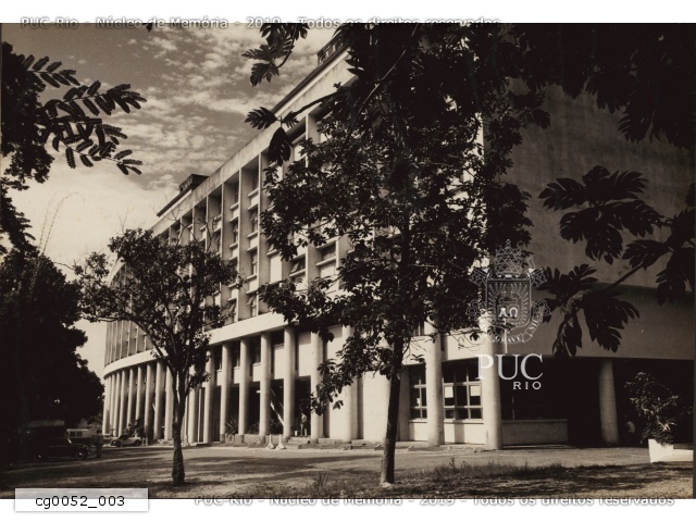 Casa localizada na frente do Instituto de Administração e Gerência onde funcionou a primeira Biblioteca Central da PUC-Rio. À esquerda há um depósito de livros, posteriormente ocupado pelo Restaurante Gourmet do Campus. |