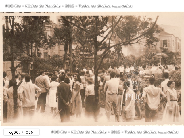 Plateia presente na comemoração do Jubileu de Prata da PUC-Rio. Na ocasião, com a presença do Embaixador da Alemanha Ocidental, foi inaugurado o prédio da Biblioteca Central e as novas instalações da Reitoria, ainda em obras, e houve a entrega das medalhas Cardeal Leme aos professores e o descerramento das placas aos benfeitores. |
