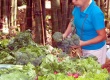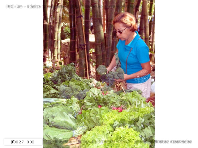 Pessoa seleciona verduras, entre alface, brócolis, rúcula, rabanete, entre outras. |
