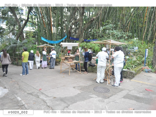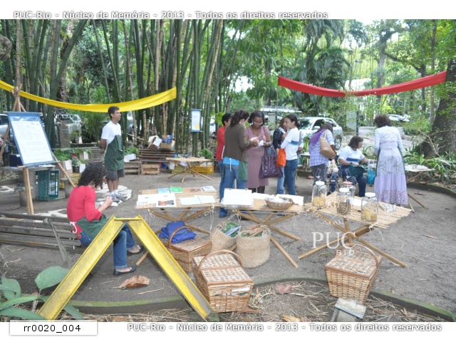 O decorrer da Feira. Funcionários de empresa terceirizada da PUC-Rio e pessoas de fora da PUC-Rio visitam a feira. |