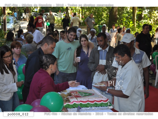 Festa realizada pelo aniversário do Vice-reitor prof. Augusto Sampaio, com bolo confeitado com o escudo do Fluminense. |