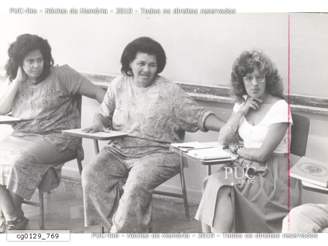 Marilene e Vera Lúcia, integrantes do grupo Mães de Acari, convidadas pelo Departamento de Serviço Social para contar as dificuldades na busca de seus filhos desaparecidos, sequestrados em um sítio em Magé em 26/07/1990. |