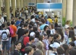 Visitantes nos pilotis no evento PUC por Um Dia. Vista do alto da escada da Ala Kennedy. |